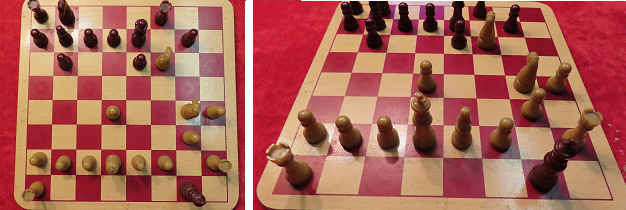 The above assumes an undistorted image, but this is impossible due to distortions in perspective caused by the camera lenses. Photogrammetry software can include this camera calibration data in its calculations, but the properties need to be determined using a series of photos of a standard object. One of the most popular is a chessboard, where the corners of each square are skewed to parallelagrams as the view angle changes.