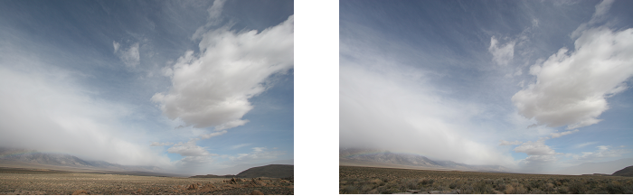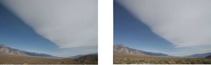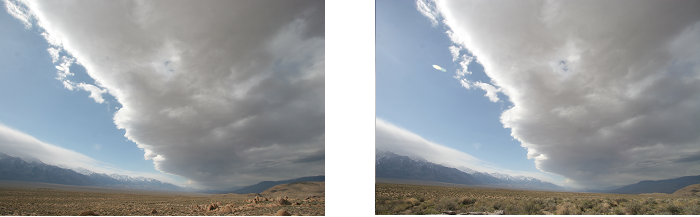 Most of the T-REX IOP's were characterized by these cumuliform roll clouds, but very few produced the photogenic altocumulus lenticularis often seen in the Sierra Nevada. One exeption was the first day of IOP 13 when the stereo imagery begins with a smooth, high-altitude wave cloud that dissipates over the next few hours to be replaced by a mostly southerly flow over the valley. If this cloud is as cirriform as it seems, it may be too far from the cameras to result in a usable parallax but the analysis is still worth attempting.