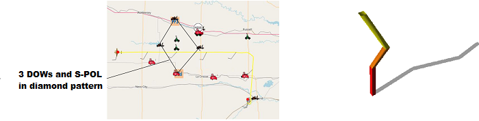 Visit the directory for all of Earth Observing Laboratory field programsThe output from mobile radar units, which see particularly large usage during projects studying convective weather, is most often viewed as disconnected 2D images. However, using the azimuth and elevation data these planes can be placed in the same 3D space as other field observations. Multiple RHI's would be particularly easy to view for a VR user moving through this area. The Plains Elevated Convection at Night (PECAN) experiment (Geerts et al. 2017) is a good example of the deployment of several radars in formations to scan in an overlapping manner. Radiosonde launches would also occur during these events, and the insertion of 3D profiles into the scene is simply handeled by a series of rectangular solids color-coded by appropriate variables. After an initial fourteen line object, each subsequent segment if only ten lines each (Billings et al. 2017).